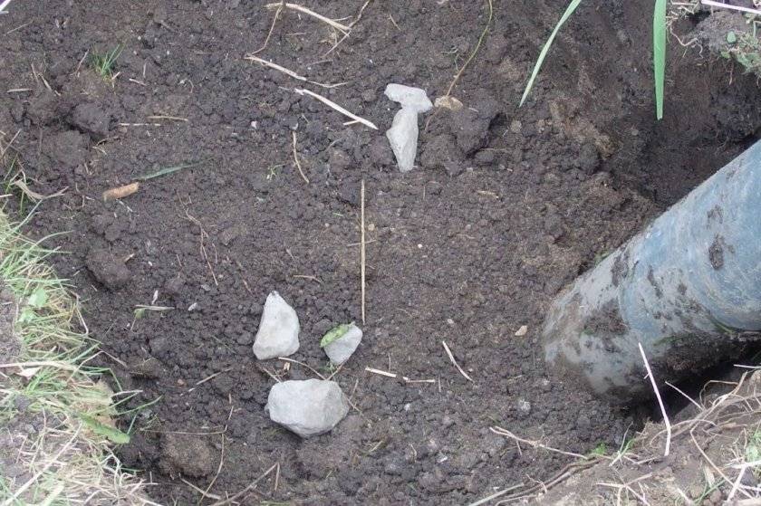 - В грунте выкапывают небольшую канавку, в которую укладывают отводок и укрепляют.