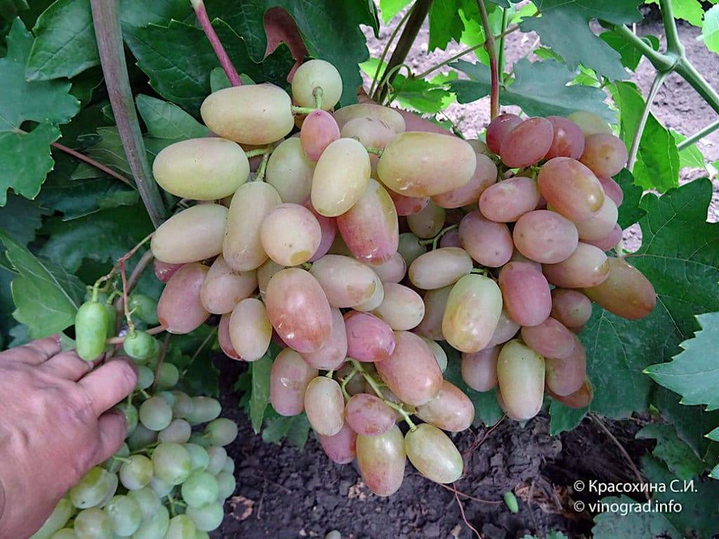 Но если, растение культивируется на солнцепеке, виноград, обычно, теряет розовый оттенок. По размерам одна ягода достигает почти 4 см в длину и 2,5 – 3 см в ширину.
