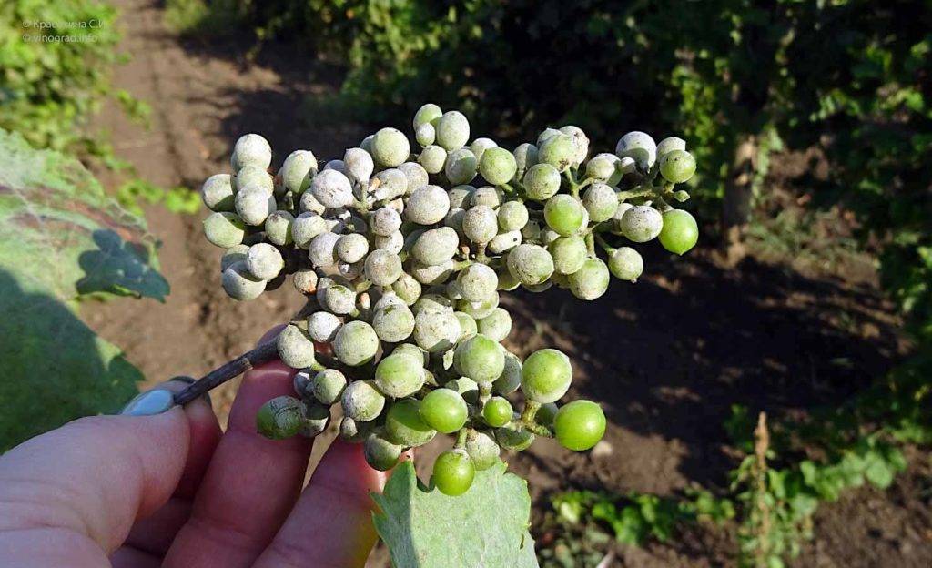 Для борьбы с ним следует обработать лозу средствами, в состав которых входит медь (хлорокись меди, бордоская смесь, «Ридомил Голд»).
