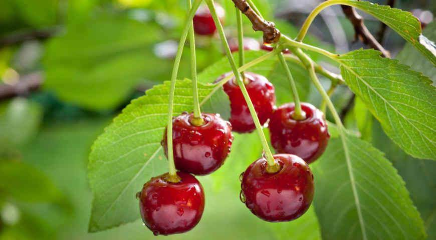 Плоды вишни сорта Сания обладают насыщенным красным или бордовым цветом