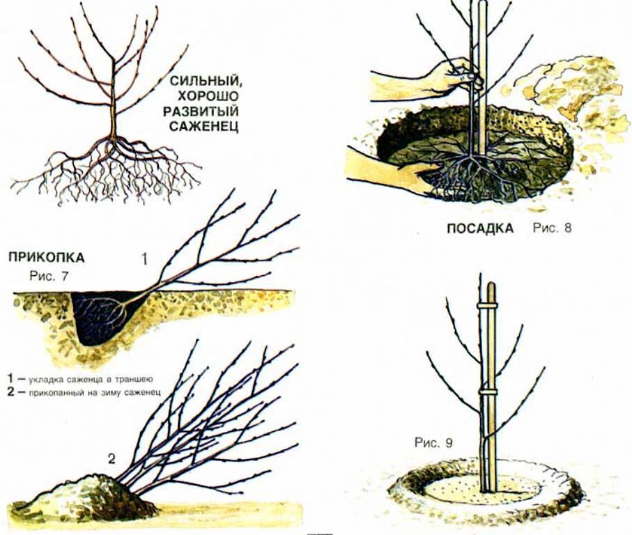 Чтобы саженец хорошо принялся, выполняют следующие работы: