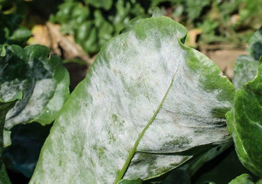 Болезнь белая ржавчина поражает многие капустные культуры. Узнать о наличии недуга можно по белым и желтоватым маслянистым пятнам на листьях. На нижней стороне листа появляется беловатый налет. При сильном поражении листья высыхают и опадают, а черешки искривляются и останавливаются в росте.