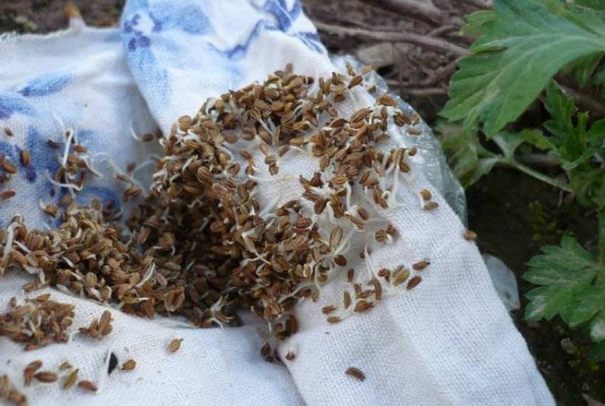 - Проращивания. Для выполнения этой процедуры семена помещают в мокрую, сложенную в несколько слоёв ткань, и оставляют при комнатной температуре на 4-5 дней, постоянно поддерживая влажность материи, вплоть до самого появления ростков.