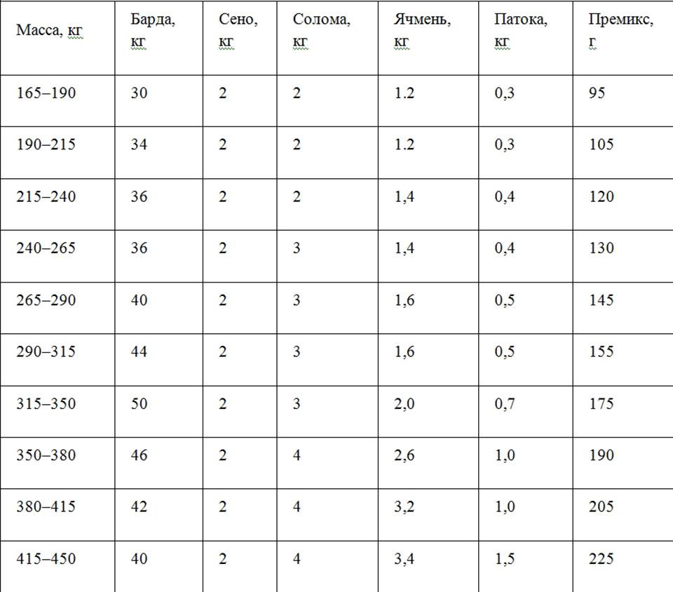 Таблица норм кормления теленка (бычка) в зависимости от массы