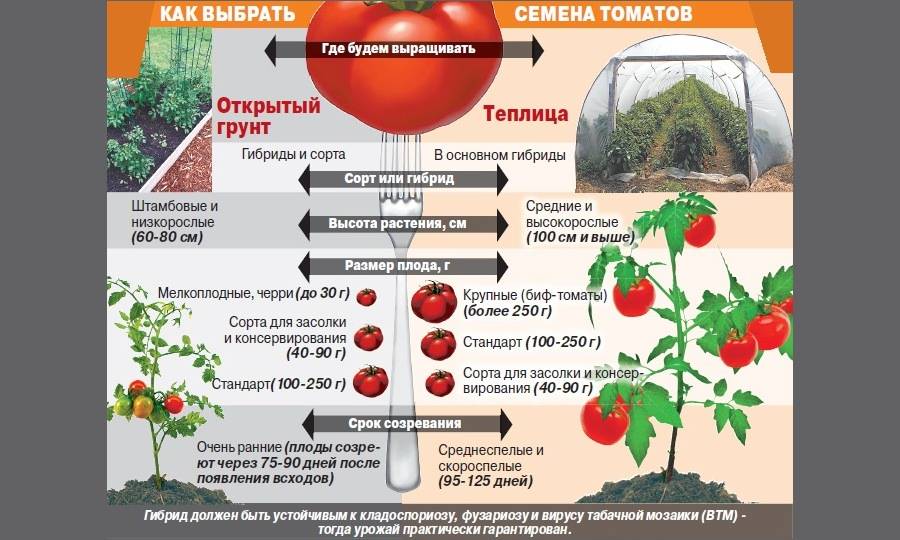 При выборе сортов ориентируются не только на собственное желание собрать максимальный урожай, но и на возможности условий, в которых будут спеть томаты.