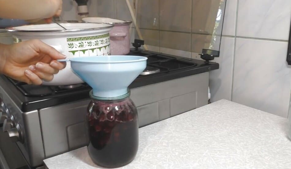 Сразу же расфасовываем вишню в подготовленные стерилизованные банки и закатываем крышками.