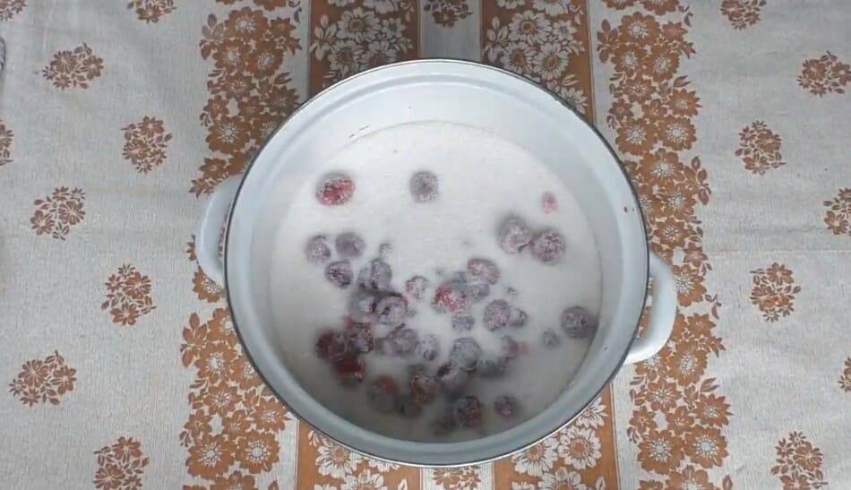 Миску с вишней ставим на медленный огонь, доводим до кипения и кипятим в течении 3-5 минут.