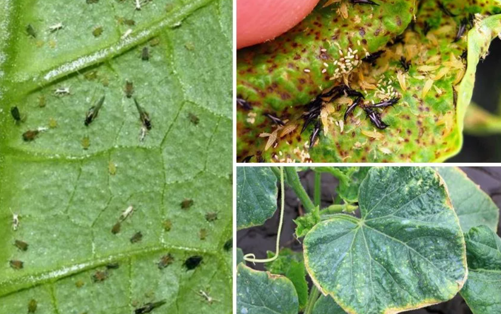 - присутствие на огурцах вредителей – бахчевых тлей, белокрылок или паутинных клещей.